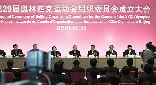 2001年12月13日,第29屆奧運會組織委員會(北京奧組委)成立,標志著北京2008年奧運會的籌辦工作正式啟動。(資料照片)