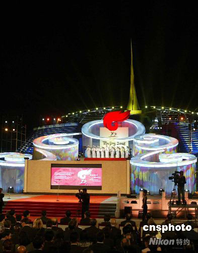 2007年4月26日晚,2008年北京奧運會火炬傳遞線路與火炬設計正式公布。中新社發 任海霞 攝