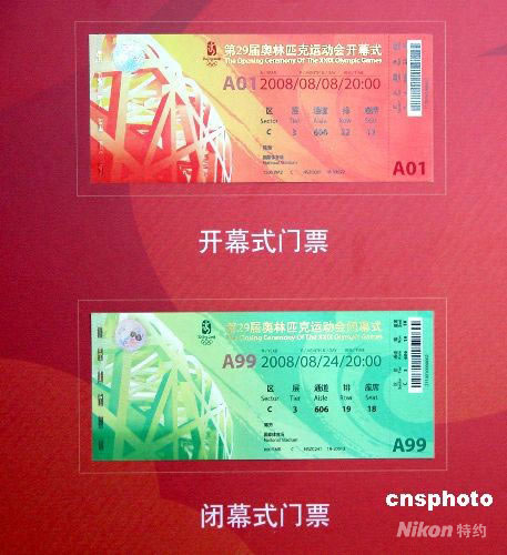 2008年4月23日,北京奧組委公布了奧運門票的票樣。杜燕 攝