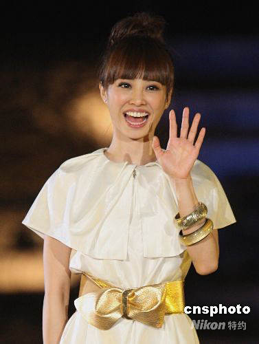 臺(tái)灣藝人蔡依琳現(xiàn)場(chǎng)獻(xiàn)歌。 中新社發(fā) 趙振清 攝