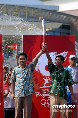 2008年5月5日下午,傳遞奧運圣火的隊伍抵達海南博鰲,開始在萬泉河畔的紅色娘子軍之鄉瓊海市傳遞。中新社發 蒙鐘德 攝