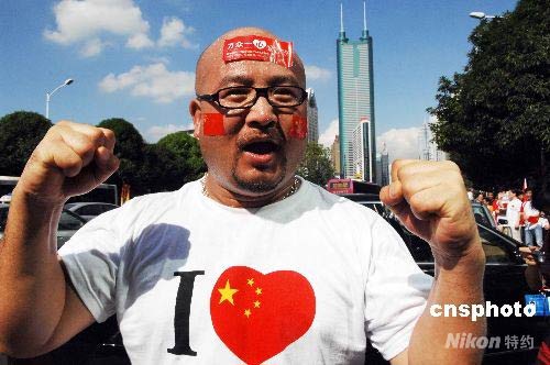 圖為深圳民眾激情迎奧運。 中新社發(fā) 陳文 攝