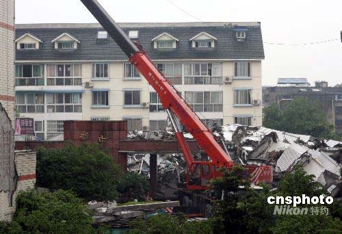 汶川地震災區都江堰市因災造成很大的破壞。圖為5月13日拍攝的都江堰受災非常嚴重的中醫院。中新社發 黃榮 攝