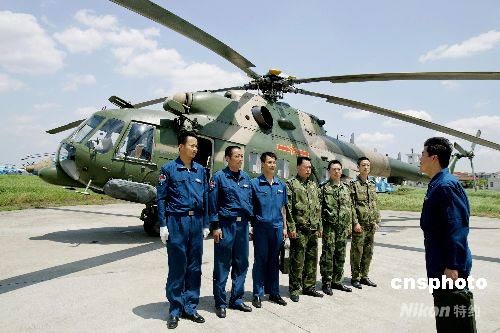5月13日,南京軍區空軍某部兩架直升機奉命分別飛赴四川地震災區,執行救援、空投任務。其余機組成員已整裝待發,隨時等候上級命令飛往災區。中新社發 賁道春 攝