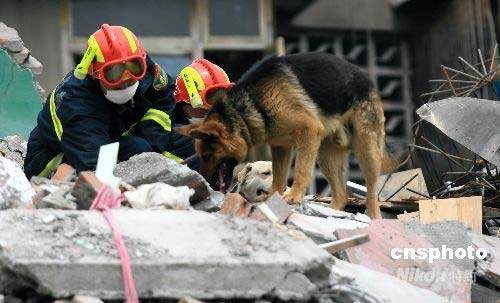 組圖:消防搜救隊和搜救犬緊張工作(8)