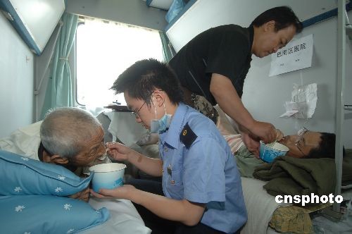 2008年5月19日,按照鐵道部的統一部署,成都鐵路局開行首趟運送地震災區受傷群眾專列,19日1O:20從綿陽發車,當日16:57到達重慶北站。運送了206名地震受傷群眾及家屬前往重慶接受治療。該次專列專列車次為57005/6/5次路用傷員列車,編組19輛,全部為25G空調硬臥車。其中硬臥15輛并配備餐車及行李車。