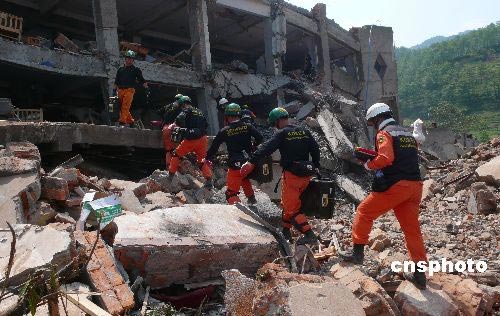 中韓兩國救援隊員四川什邡聯手搜救被困者(2)