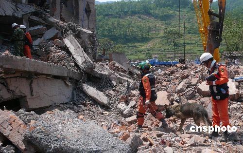 中韓兩國救援隊員四川什邡聯手搜救被困者(3)