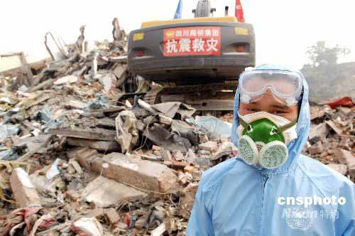 圖:救災部隊在汶川映秀鎮展開消毒防疫(2)