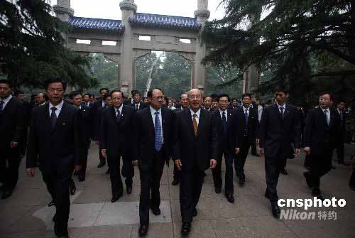 5月27日,中國國民黨主席吳伯雄率領(lǐng)的大陸訪問團(tuán)拜謁中山陵。他將率團(tuán)在南京、北京、上海三地展開6天的大陸訪問行程。中新社發(fā) 盛佳鵬 攝