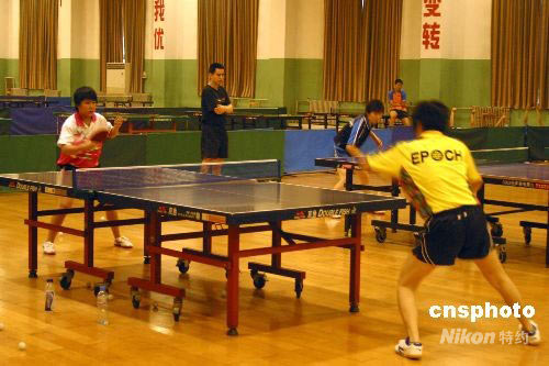 五月二十七日,四川省乒乓球運(yùn)動(dòng)員在河南鄭州進(jìn)行緊張的訓(xùn)練。連日來(lái),為避免地震的影響,四川省包括游泳、射擊、乒乓球、網(wǎng)球、跆拳道等六支運(yùn)動(dòng)隊(duì)九十多名運(yùn)動(dòng)員轉(zhuǎn)移到河南鄭州進(jìn)行訓(xùn)練,以全力備戰(zhàn)北京奧運(yùn)會(huì)和明年舉行的全運(yùn)會(huì)。 中新社發(fā) 史寶銀 攝
