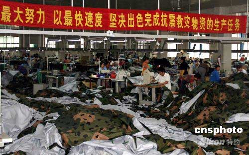 圖:野營用品企業(yè)開足馬力生產(chǎn)救災帳篷(2)
