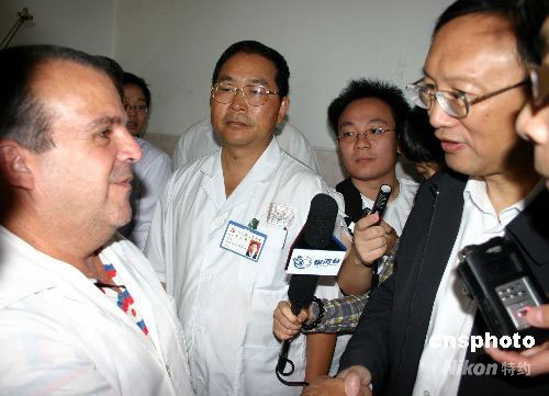 5月30日上午,中國外交部部長楊潔篪來到四川省人民醫(yī)院,看望在這里救治地震災區(qū)傷病員的古巴醫(yī)療隊,感謝他們給予四川地震災區(qū)民眾的關(guān)心,并高度贊揚了他們的國際人道主義精神。中新社發(fā) 楊杰 攝