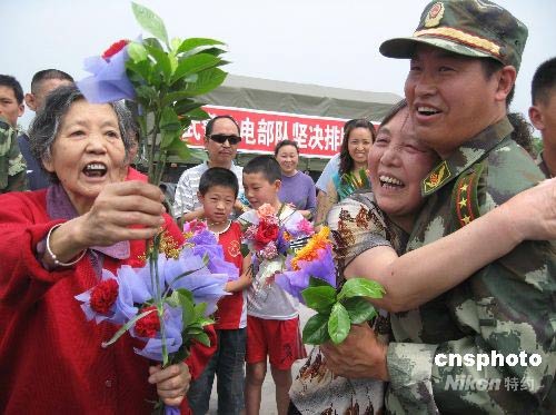 綿陽市民熱烈歡迎唐家山堰塞湖搶險官兵