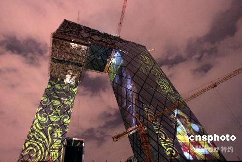 圖:巨型投影扮靚央視新址 體育精神鼓舞中國(guó)加油 (4)