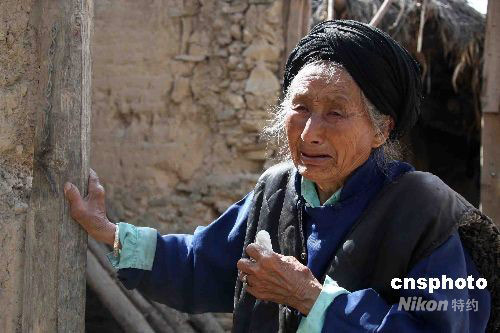 6月2日,86歲的羌族老人王天秀在倒塌的房屋前哭泣。中新社發 曾憲平 攝