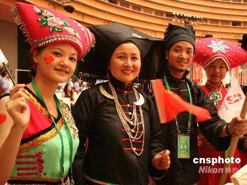 壯鄉民眾穿上盛裝喜迎圣火。中新社發 林艷華 攝