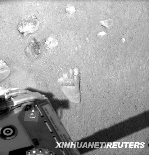 “鳳凰”號探測項目經(jīng)理戴維·斯潘塞6月1日說,機械臂與火星的第一次接觸為之后的采集土壤和向其他科學(xué)儀器傳送土壤樣品做好了準備。由于機械臂形狀特殊,其在火星留下的“第一痕”類似于人類腳印。 新華社/路透