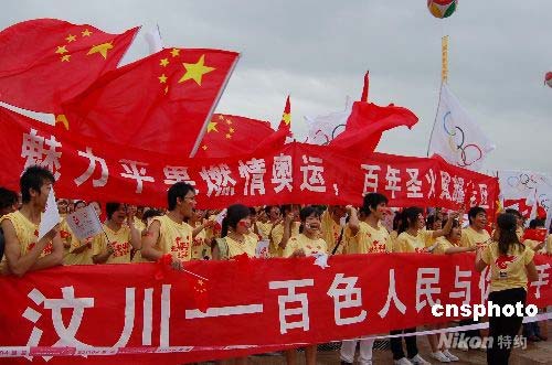 革命老區(qū)廣西百色熱情迎接圣火為汶川加油