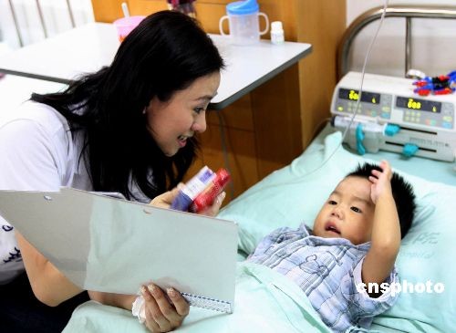 圖為香港華光功德會大使翁虹小姐為小朋友帶來節日的問候。中新社發 黃榮 攝
