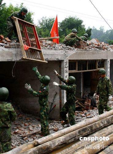 圖:中國空降兵四川震區幫民眾重建家園(2)