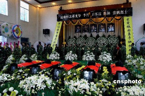 6月13日,四川大地震救援中失事直升機遇難機組人員遺體告別儀式在成都市殯儀館舉行,來自軍方及社會各界的人士紛紛前來送別英雄。中新社發(fā) 劉新 攝