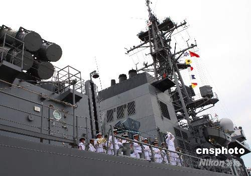 圖為“漣”號抵達港口時奏樂行禮。中新社發 宋吉河 攝