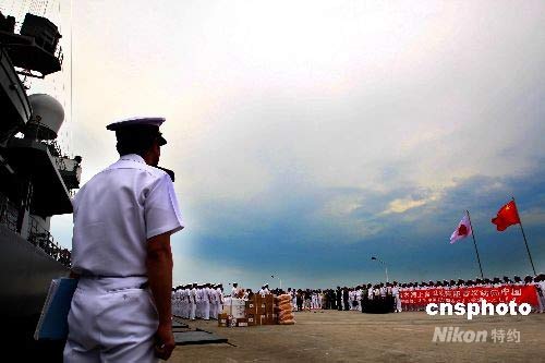 中國人民解放軍海軍官兵歡迎日本"漣"號艦艇訪華