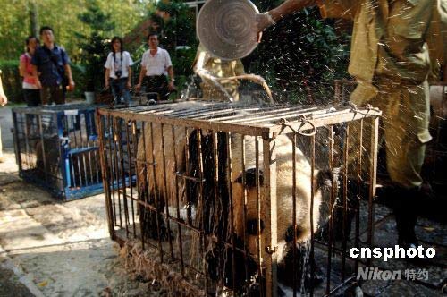 首批四只臥龍受災大熊貓抵達福州"寄養"(2)