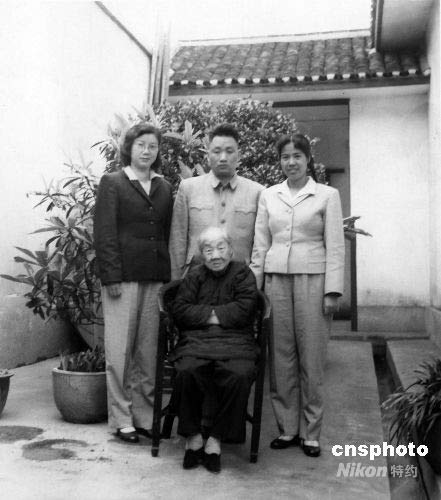 資料圖為毛岸青與邵華回湖南老家看望外婆時留影。中新社發 中新社 攝