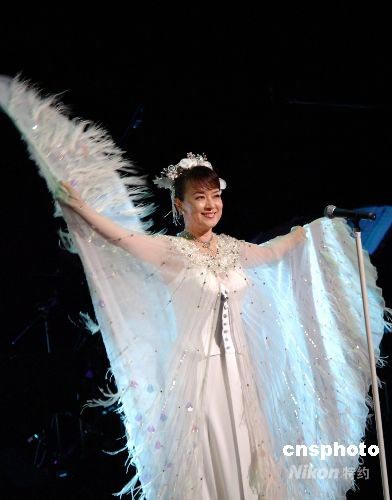 圖為著名歌星翁倩玉在賑災義演上演唱。中新社發 朱沿華 攝