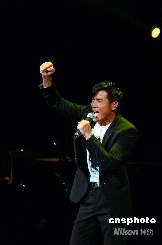 圖為郭富城高歌一曲《強》,為四川加油。中新社發 朱沿華 攝