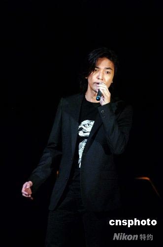 圖為著名歌星鄭伊健在義演現場演唱《風云》。中新社發 朱沿華 攝