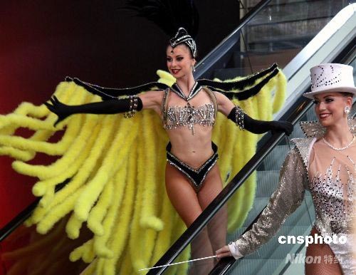 法國(guó)巴黎著名的麗都夜總會(huì)的舞娘在巴黎老佛爺百貨男裝館,為游人和顧客獻(xiàn)上風(fēng)情萬(wàn)種的火辣演出。中新社發(fā) 王倩 攝