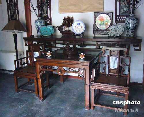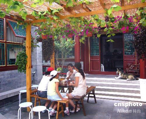 圖為首戶獲得“奧運人家”青花瓷盤標志的家庭——北京什剎海南官房胡同39號。 這座典型的北京民居,雕梁畫棟,整潔清新,院中的石榴樹和牡丹花透著勃勃生機,蟈蟈在竹籠里歡快地叫著。游客們圍坐在石桌前聆聽主人敘述這座四合院的來歷:“四合院由東、南、西、北四面的房間圍合而成,里面是一個中心庭院,已有兩千多年的歷史。古代,正房中間的椅子是專門給長輩坐的,因為父母是家里最受尊敬的人。父親坐在左邊,母親坐在右邊。”家庭講解員們不停地向前來參觀的國內外游客講述這座院落的歷史。 據介紹,自從被評為首個“奧運人家”以后,國內外各地的游客紛至沓來,前來參觀的游客人數驟增,于是親戚們便自發來幫忙,目前家里的工作人員有十幾人,其中有三個人的英語都是六級,奧運會期間,這三個人將會請假專職在四合院為來訪的奧運賓客服務。