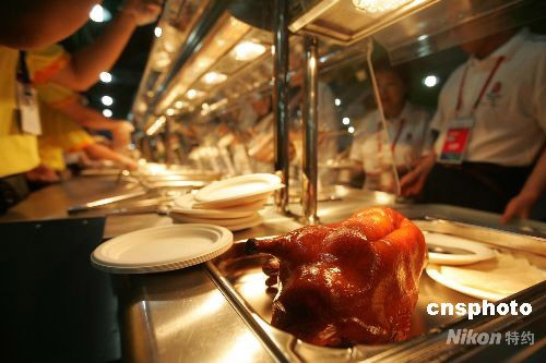圖:奧運村餐廳日提供600只北京烤鴨