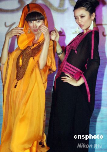 8月10日,第29屆奧運會在北京舉行之際,“突尼斯旅游文化周”在北京舉行,來自“突尼斯的藝術家、音樂家、舞蹈家、烹飪大師、商業代表以及政府代表組成的代表團,以音樂節、美食節、商務研討會等多種形式,為中國及各國各界的賓客呈現一個全方位、全視角、多層次、豐富多彩的突尼斯新形象。圖為模特展示突尼斯時裝設計師創作的服飾作品。中新社發 錢興強 攝