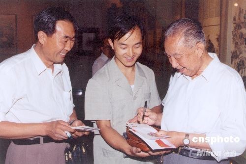 曾擔任中國共產黨和國家重要領導職務的華國鋒,因病醫治無效,于2008年8月20日12時50分在北京逝世,享年87歲。資料圖為1995年8月3日,華國鋒在抗日戰爭勝利五十周年美術作品展上為觀眾簽名。中新社發 毛建軍 攝