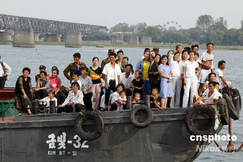 9月9日正值朝鮮國慶,朝鮮新義洲民眾有組織地乘船游覽鴨綠江。中新社發(fā) 陳浩浩 攝