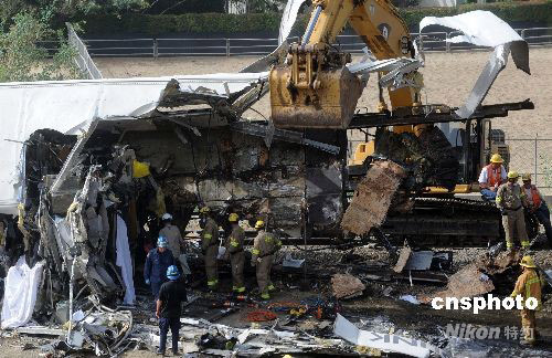 圖:美國洛杉磯發生嚴重的列車相撞事故(2)