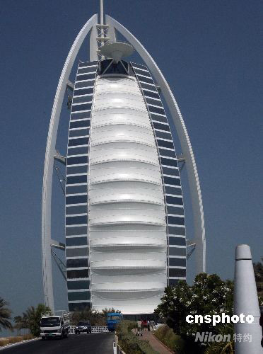圖為造型別致的七星級帆船酒店。中新社發(fā) 錢興強 攝
