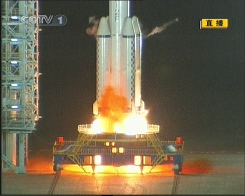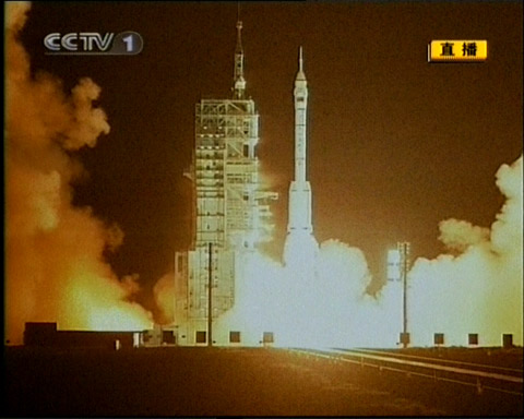 北京時間二十五日晚九時十分,中國自行研制的第三艘載人飛船神舟七號,在酒泉衛(wèi)星發(fā)射中心載人航天發(fā)射場由“長征二號F”運(yùn)載火箭發(fā)射升空。