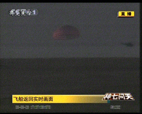 北京時間二十八日十七點三十七分,在太空遨游兩天多的“神舟”七號飛船返回艙成功著陸。