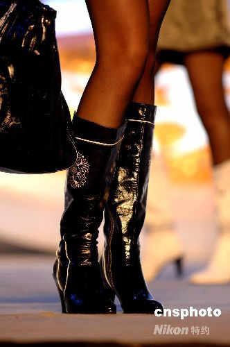 圖:靚模美腿展示青花瓷元素時尚鞋秀(2)