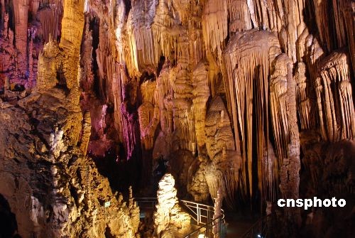 廣西桂林山青水秀甲天下,世界獨特典型的喀斯特地形構成了別具一格的桂林山水,山多有洞,洞幽景奇,瑰麗壯觀。洞中鐘乳石,鬼斧神工,琳瑯滿目,栩栩如生,千姿百態如畫美。中新社發 周利朔 攝