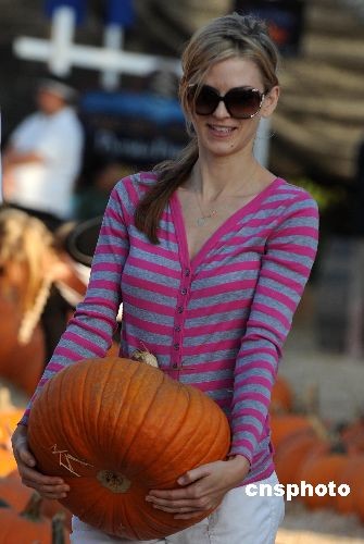 “萬圣節”將至,許多美國洛杉磯市民來到遠近聞名的貝弗利山莊“骨頭先生南瓜田”,選購自己中意的南瓜。圖為美女抱得南瓜歸。中新社發 張煒 攝