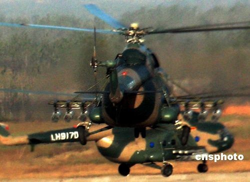 圖為武裝直升機(jī)火速出發(fā)。中新社發(fā) 宋吉河 攝