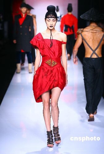 2008年10月30日,模特在2008上海時裝周國際品牌發(fā)布會上表演。本季設計師最新秋冬作品靈感來自于中國象棋。中新社發(fā) 睿瀛 攝