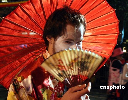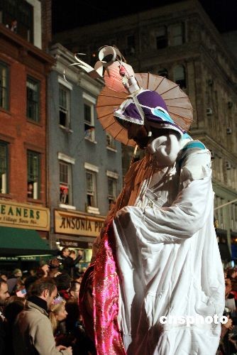 10月31日晚,第三十五屆“紐約格林威治村萬圣節游行”隆重登場,曼哈頓六大道人山人海,盡管面對金融風暴,但紐約客依然“群魔亂舞”,極盡瘋狂。中新社發 彭偉祥 攝