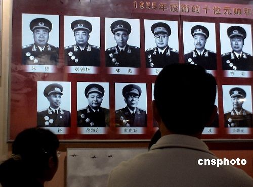 在北京中國(guó)軍事博物館舉辦的《復(fù)興之路》大型歷史展覽中,包括林彪在內(nèi)的十大元帥照片吸引參觀者的目光。中新社發(fā) 賈國(guó)榮 攝